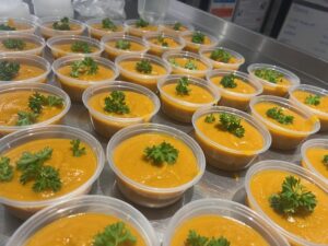 – £60 covers 2 weeks healthy, fresh, nutritious delivered meals with fruit and welfare visits for 1 vulnerable person, helping with recovery and wellbeing after a hospital stay, facilitating their discharge home and maintaining their health and wellbeing longterm.